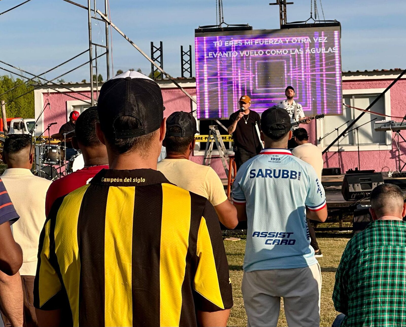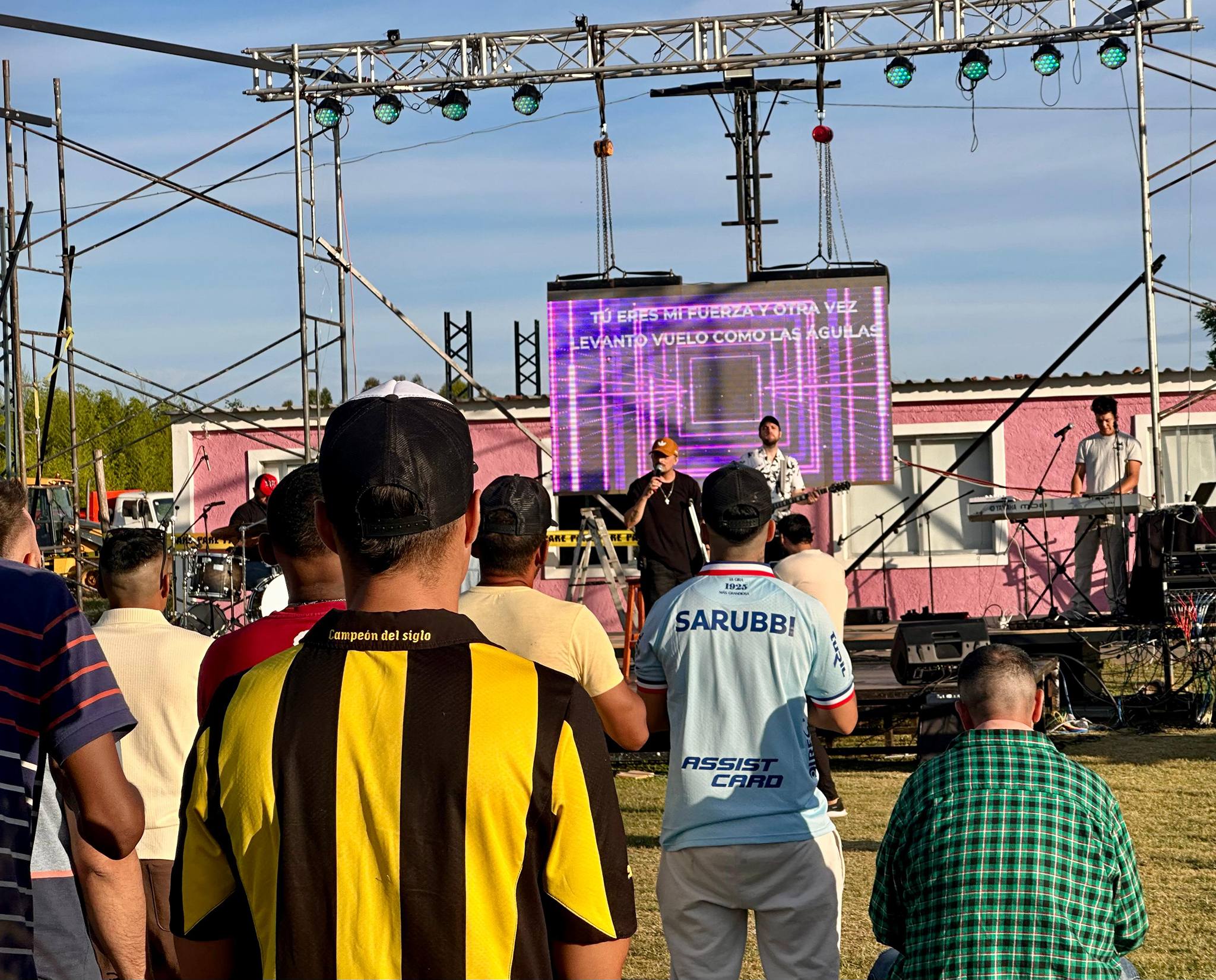 Pasado el mediodía, ya se vislumbraba el trabajo en el escenario con las pruebas de sonido, las colocaciones de las luces y las pruebas de las pantallas con las que, más tarde, las bandas que participaron hicieron vibrar a quienes se encontraban en el predio.
