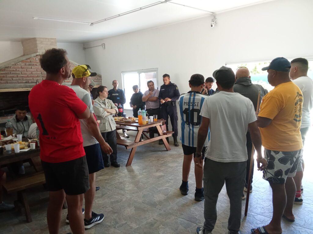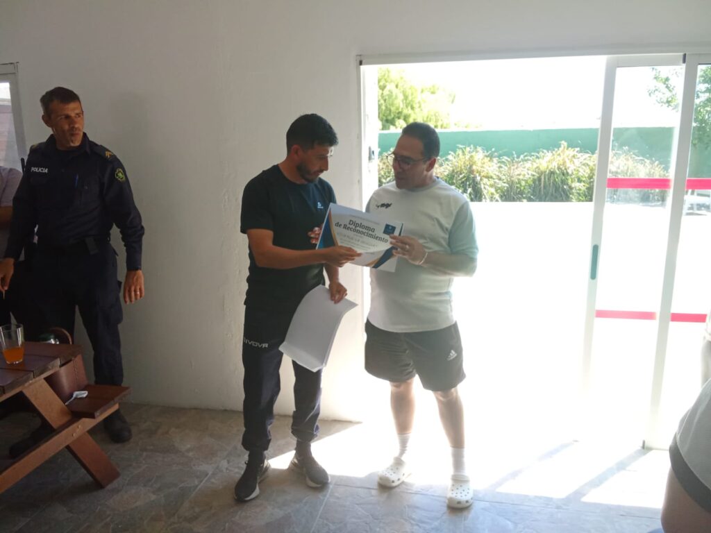 En una jornada soleada y ventosa, se jugó un partido de fútbol donde los visitantes se llevaron la victoria por 4 a 2. Finalizado el encuentro, se realizó un almuerzo para los jugadores y las autoridades que los acompañaron. Durante el mismo, se le hizo entrega de reconocimientos al Secretario de VNU, Wilson Brun, y a la Institución por su labor y dedicación.