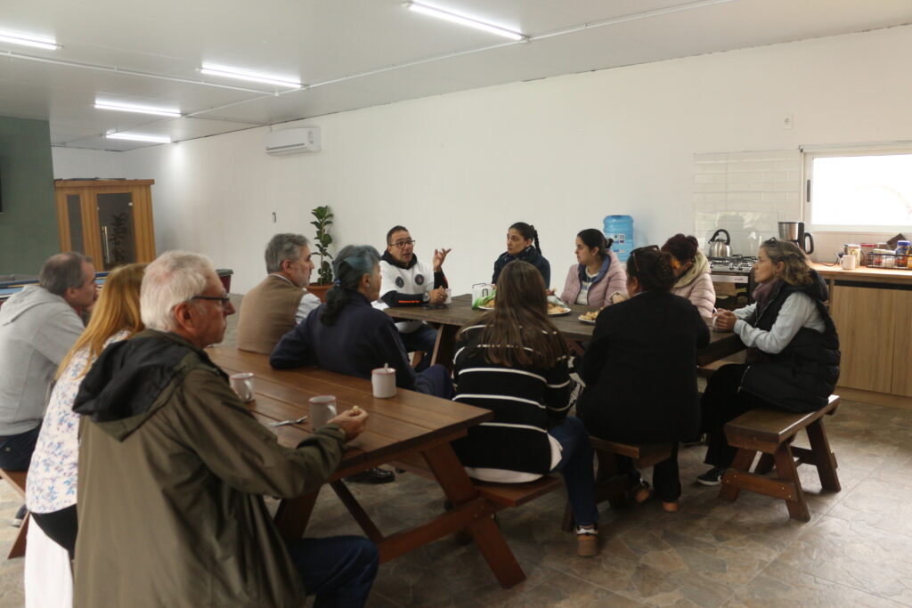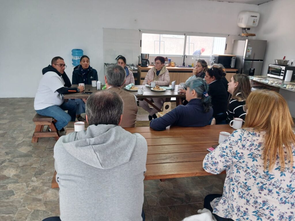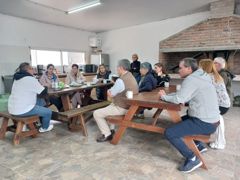 Luego del recorrido por las instalaciones, que se compone de dos chacras donde se desarrollan los procesos de restauración de la institución, se mantuvo un desayuno de trabajo. Se plantearon las distintas alternativas y las diferentes problemáticas que se presentan a diario, en cada una de las etapas de restauración, rehabilitación y reinserción de las personas en la comunidad.